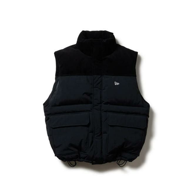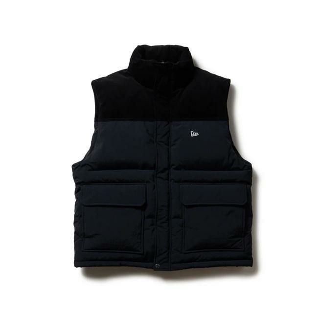 異素材MIX!暖かおしゃれダウンベスト! ニューエラ NEW ERA Down Vest Corduroy Nylon Combi Black ダウンベスト コーデュロイ ナイロン コンビ ブラック メンズ レディース 冬 14682725