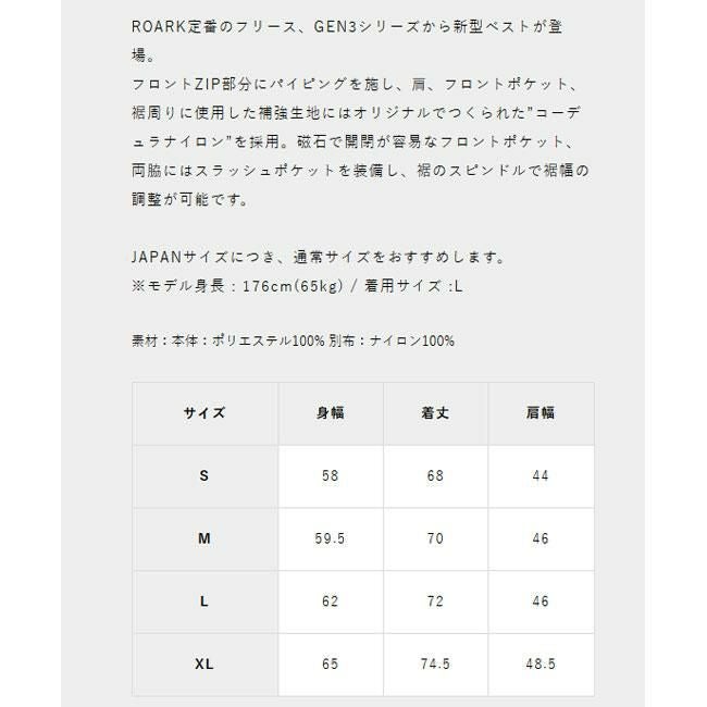 レイヤリング自由自在。冬の万能フリースベスト。 ROARK ロアーク GEN3 FLEECE VEST フリースベスト メンズ ミリタリー コーデュラ補強 アウトドア 防寒 25-26