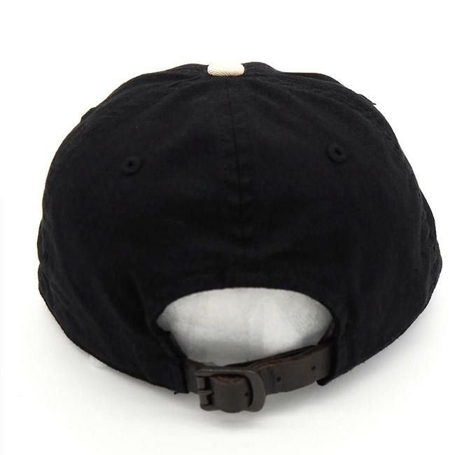 ツバはフラットバイザー仕様で6パネル、後部のレザーストラップアジャスターでサイズ調整が可能。