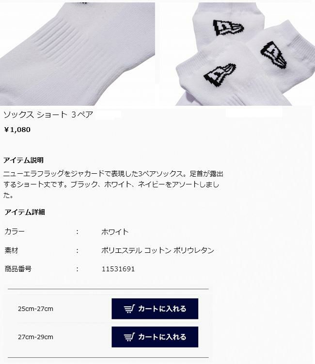 靴下 NEW ERA ニューエラ 3パック ソックス ショート 3Pack Socks Short メンズ くつした 春夏 秋冬