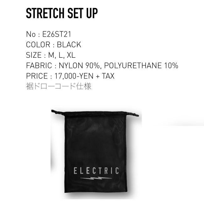 トップスとショーツのセットアップスタイルで、機能性とデザイン性を両立したELECTRICらしいアイテムです。