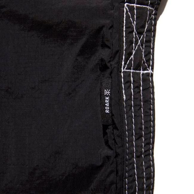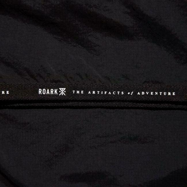 ROARKロゴとSAFE CAMPマークのレザーワッペンをそれぞれ片面に配置。開き口の杉綾テープのデザインもポイントです。