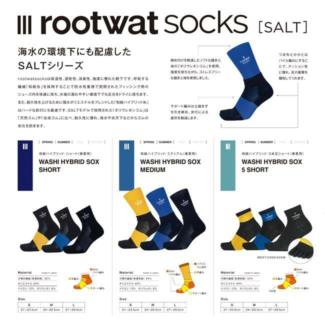 他の画像を見る 【メール便対応可】ハイブリッドな高機能ソックス 超撥水ソックス ROOTWAT ルートワット WASHI HYBRID SOX MEDIUM 靴下 釣り アウトドア トレッキング 春夏 秋冬 定価 ¥ 2,750 のところ 特別価格 ¥ 2,750 税込 カートに入れる お気に入りに登録する
