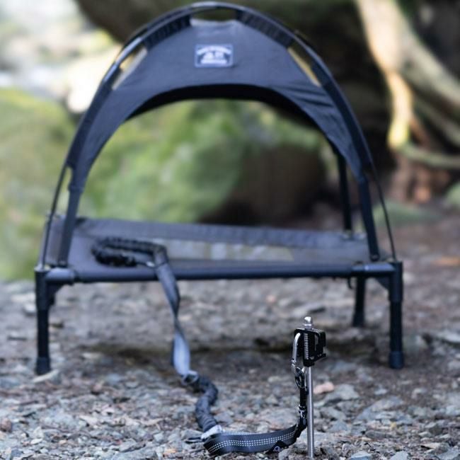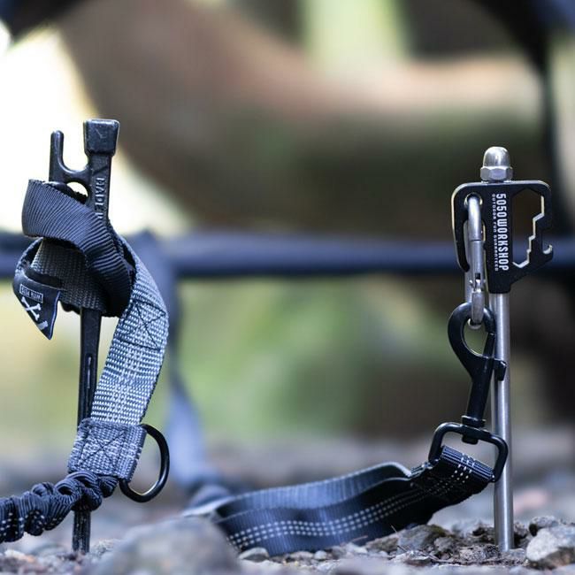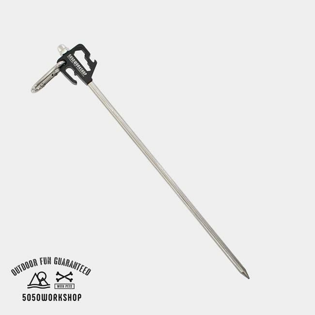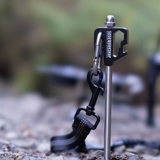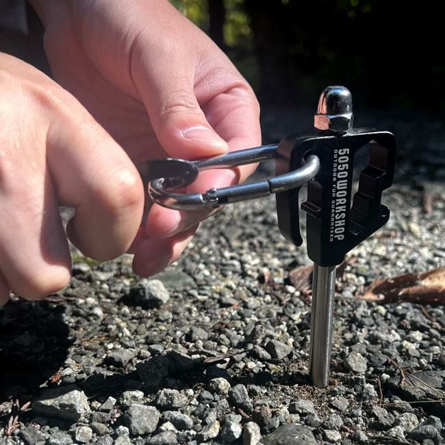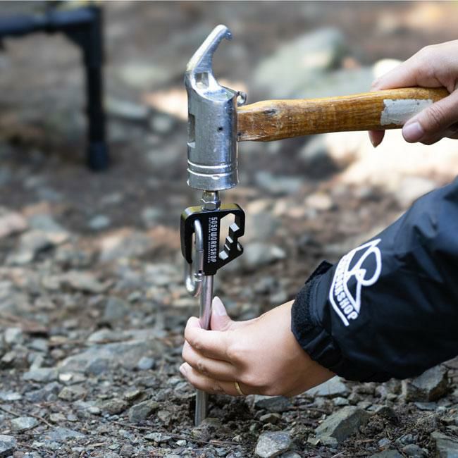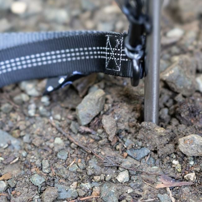 アウトドアで使いやすいペグ式のアニマルアンカーです。硬く締まった地面にハンマーなどを用いて本体を回転部分50-100mm位まで垂直に打ち込み地面に固定し使用します。リードをかける部分は、回転式なのでペットが動いても絡みづらい仕様。カラビナ付きなのでお手持ちのリードを簡単に取り付け出来ます。ペットと共にアウトドアシーンを快適に過ごすことが出来ます。