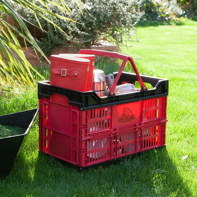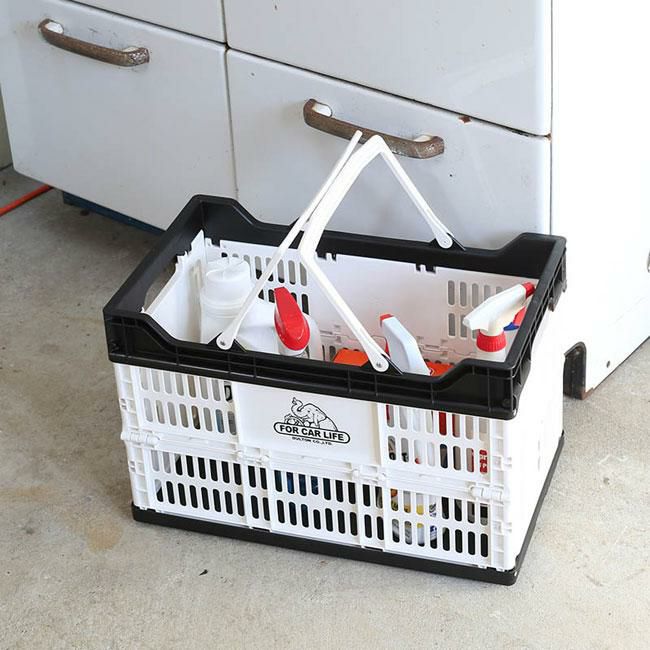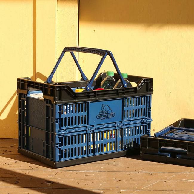 特徴的なツートンカラーとキャラクターロゴが目を引く、取っ手付きの折りたたみコンテナ。 愛車のカラーに合わせたり、配色の組み合わせを楽しんだり。 折りたたんで、スタッキングして、コンパクトに保管・収納可能。 車載だけでなく、ガーデン用品やランドリー小物の収納として、時には持ち運び用のバスケットとして。 丸っと水洗いも出来るので、アウトドアやレジャーでも気兼ねなく使えます。 それぞれのシーンにタフでカラーリング豊富な”FOR CAR LIFE”のコンテナを。