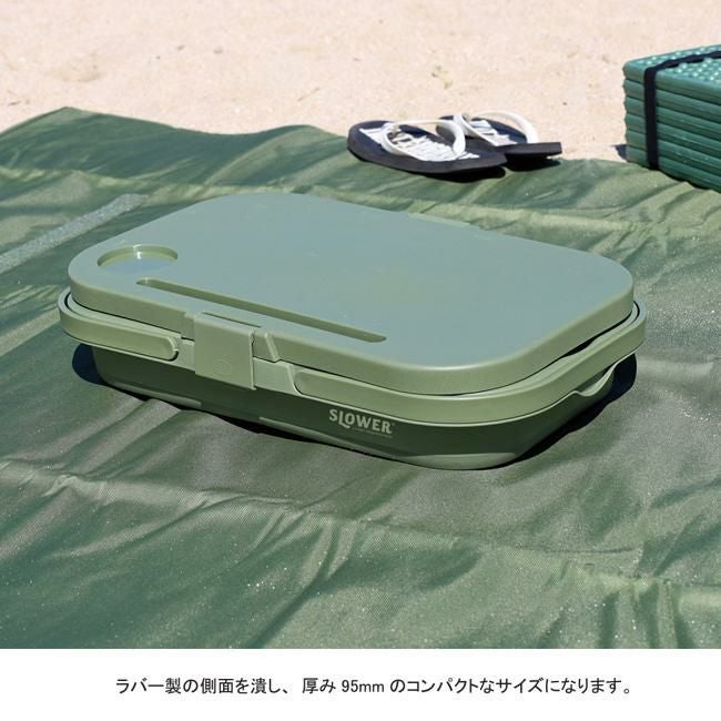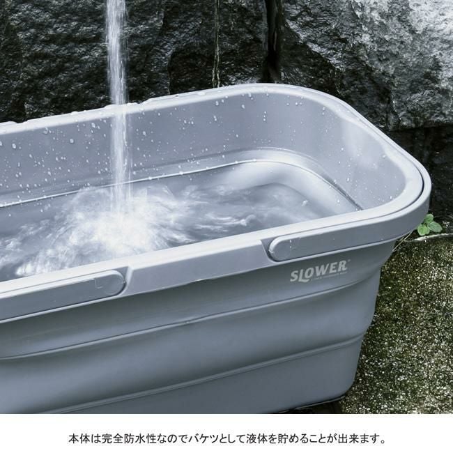 折りたためる部分の素材は「熱可塑性エラストマー(TPE)」を使用しており完全防水なので水などを入れてご使用いただくことも可能です。ピクニックでドリンクと氷を入れたり、お掃除のバケツとしてもご使用いただけます。