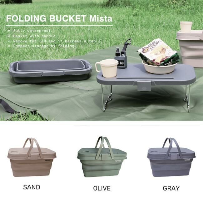 完全防水のピクニックバケットでテーブルとしてもご使用いただける「FOLDING BUCKET Mista(ミスタ)」が発売となります。