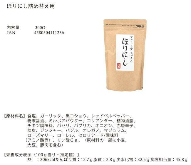 他の画像を見る 和と洋がうまく溶け合い焼き魚・肉・チーズに、白飯にふっても、そのまま舐めても美味しいです アウトドアスパイス ほりにし 詰め替え用 300g アウトドア キャンプ BBQ 調味料 春夏 秋冬 定価 ¥ 1,890 のところ 特別価格 ¥ 2,090 税込 在庫切れ 詳細を見る お気に入りに登録する