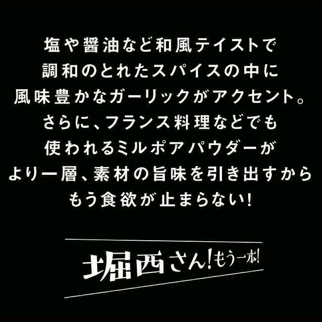 食塩、ガーリック、黒コショウ、レッドベルペッパー、粉末醤油、ミルポアパウダー、コリアンダー、植物油脂、チキン調味料、パセリ、パプリカ、オニオン、赤唐辛子、陳皮、ジンジャー、バジル、オレガノ、マジョラム、ローズマリー、ローレル、セロリシード/調味料(アミノ酸等)、リン酸Ca、(原材料の一部に小麦、大豆、豚肉を含む)