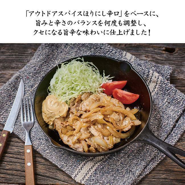 「アウトドアスパイスほりにし辛口」をベースに、旨みと辛さのバランスを何度も調整し、クセになる旨辛な味わいに仕上げました!
