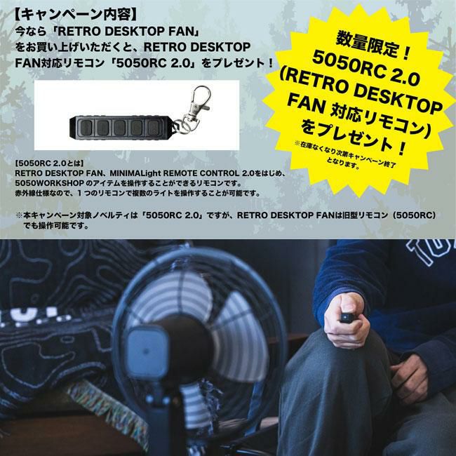 5050WORKSHOP 扇風機 RETRO DESK TOP FAN レトロデザイン コードレスファン 小型扇風機 デスクファン 卓上ファン おしゃれ アウトドア キャンプ ギア 充電式 持ち運び便利 リモコン付き 限定キャンペーン付き 昭和風 静音 軽量 ポータブル 扇風機