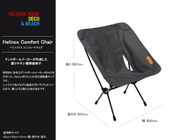 Helinox ヘリノックス コンフォートチェアは世界的に有名なテントポールメーカーのDAC社が作った、Helinox折りたたみ式の超軽量チェアです。シンプルでありながら座面が吊り下げられているので、驚くような座り心地の良さです。頑丈なポリエステル生地と超高力アルミフレームで、キャンプ、ホームどちらでもいつでもどこでも便利に使用できます。