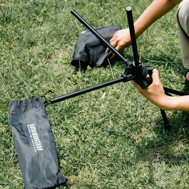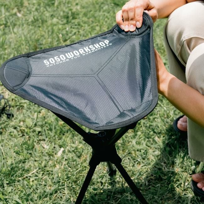 座った状態で360度回転することができ、気軽に方向を変えることができます。480gと軽量コンパクトタイプなのでアウトドアシーンではもちろん、スポーツ観戦やアミューズメント施設※などでも気軽に持っていくことが可能です。