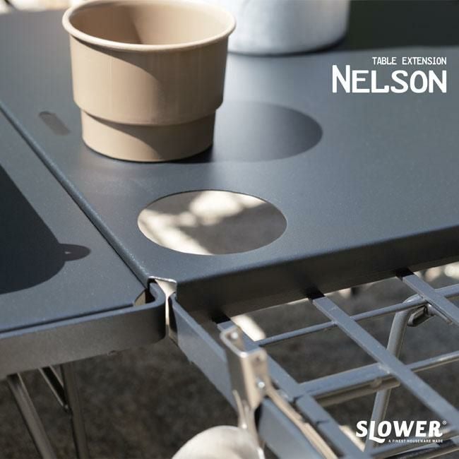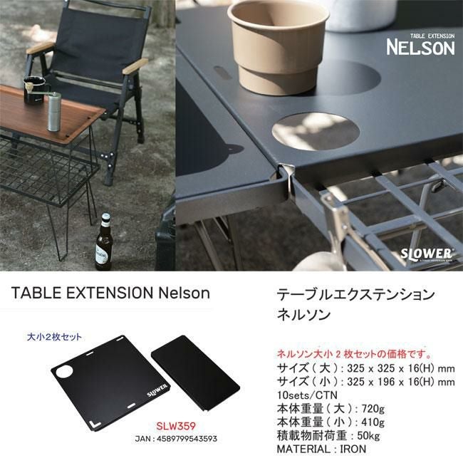 何通りにも使用可能な折り畳みアウトドアテーブル シンプル オシャレ おしゃれ お洒落 アウトドア テーブル Brundle拡張パーツ SLOWER TABLE EXTENSION Nelson スロワー ネルソン 折りたたみ コンパクト 鉄製 春夏 秋冬