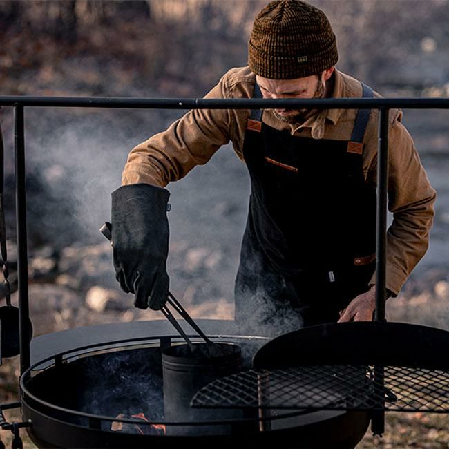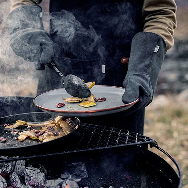 Barebones ベアボーンズ オープンファイヤーグローブは天然フルグレイン(牛革)製のレザー手袋です。熱、石炭、火花から長時間、手を保護します。厚みのあるカットとハイカフデザインでありながら、柔軟性と動きやすさを実現しました。フルグレインレザーで丈夫で長持ちします。