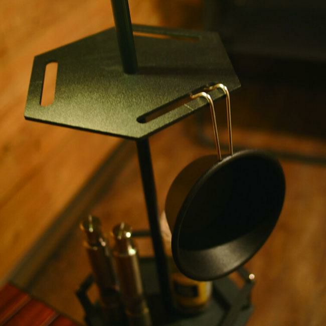 上下2段にセット可能で上段はシェラカップなど吊るすことが出来るスリットが入っています。