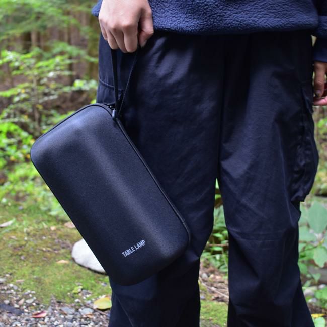5050WORKSHOPのTABLE LAMPは、インドアからアウトドアまでシームレスに活躍する卓上ライトです。ベッドサイドのライト、キャンプのテーブルの周りなど、自宅やアウトドアでも光が欲しい空間で優しく周りを灯してくれます。タッチセンサーで直感的に操作ができ、防塵防水等級P54と専用のセミハードケース付きで安心してアウトドアに持ち出せます。サイドの格子から光が出るので広がりも確保。暖色から温白色の光に色合いが変化。充電式で最大250時間使用可能です。