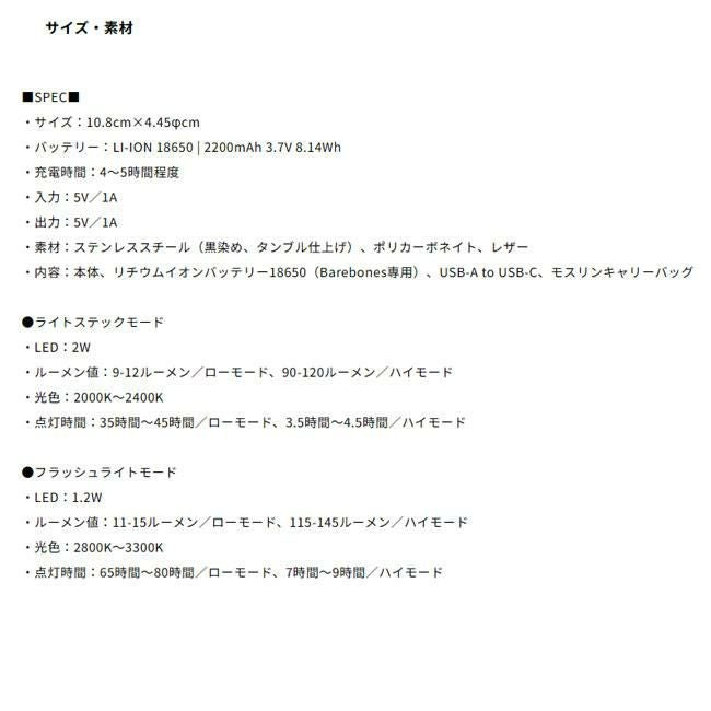 ・内容:本体、リチウムイオンバッテリー18650(Barebones専用)、USB-C to USB-Cケーブル、USB-C to USB-Aアダプター