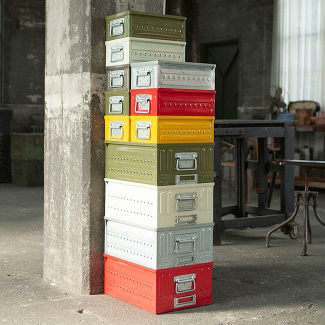 タフでハードなルックスそのままの性格。”軽量化”や”折畳み可能”なんていう言葉は彼の辞書にありません。スタッキングしても、物を入れても響く金属音は決して小さくは無いけれど、それ位不器用な奴と過ごすのも面白い。ちょっと乱暴に使ってこそ分かり合える相棒かもしれません。
