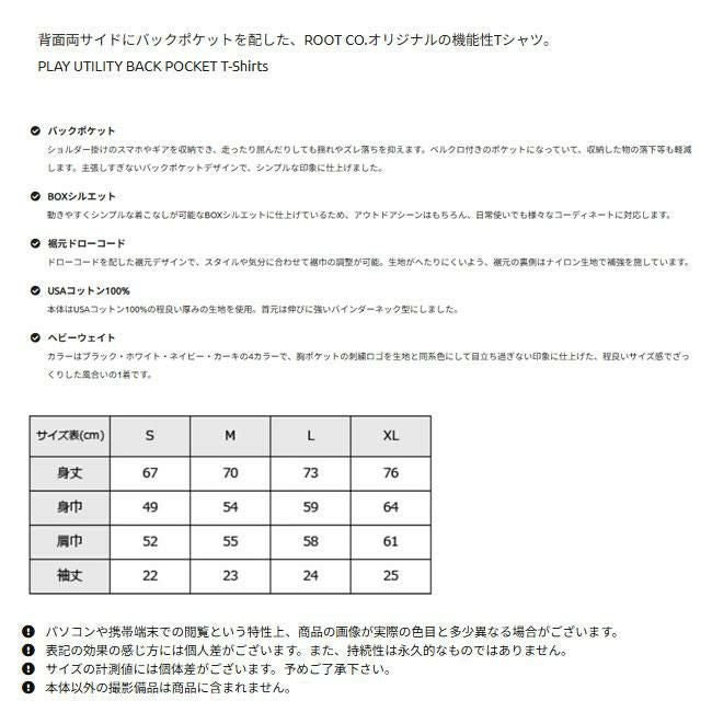 ROOT CO. / ルートコー / メンズTシャツ / 半袖Tシャツ / アウトドアTシャツ / バックポケットTシャツ / ドローコード / ヘビーウェイト / USAコットン / キャンプファッション / 機能性ウェア / フェスTシャツ