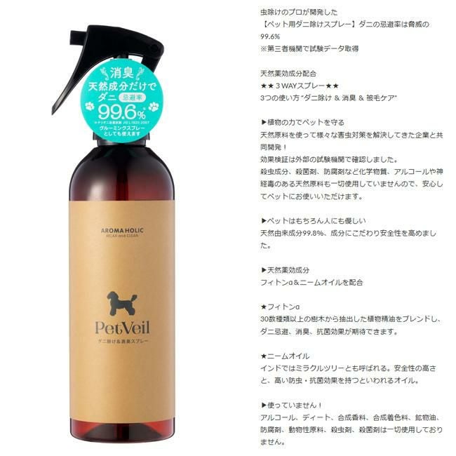 ペット用 ダニ除け スプレー アロマホリック ペットヴェール PetVeil3WAYスプレー ダニ除け 消臭 被毛ケア