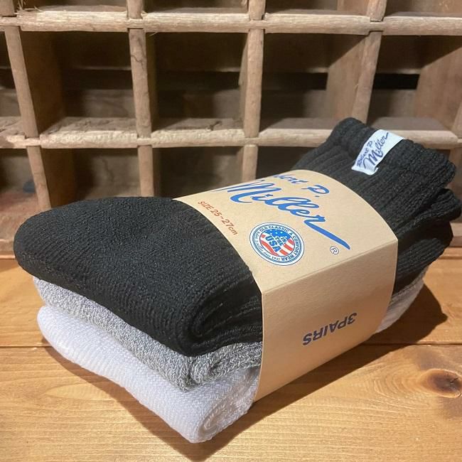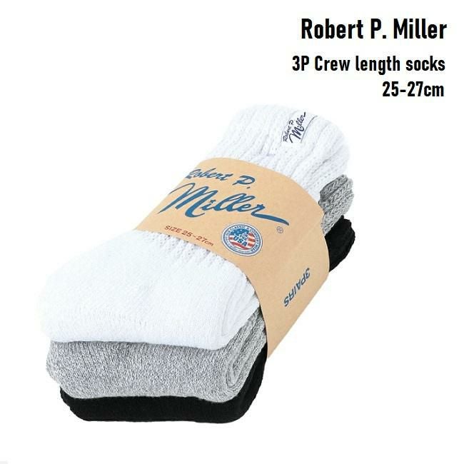 靴下 Robert P. Miller 3P Crew length socks 25-27cm (312C/アソート) ロバートピーミラー メンズ ソックス 3足セット クルーソックス 無地 すね丈 春 夏 秋 冬