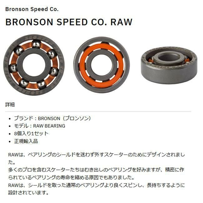 ブロンソン スケートボード ベアリング Bronson Speed Co.RAW BEARING タングステン・コーティング スケボー