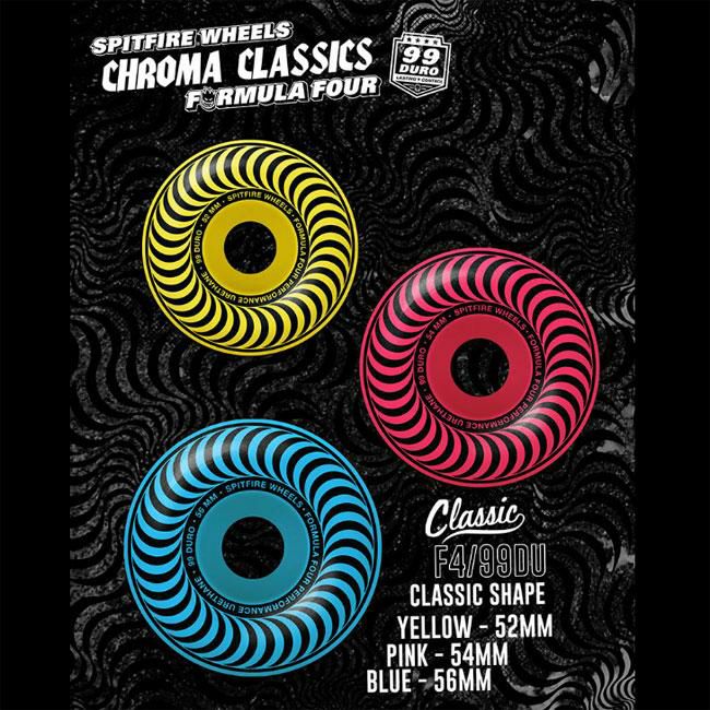 【メール便対応】安定感 スピード グリップ抜群 ウィール SPITFIRE FORMULA FOUR CHROMA CLASSIC 99DURO (52,54,56mm) スピットファイヤー