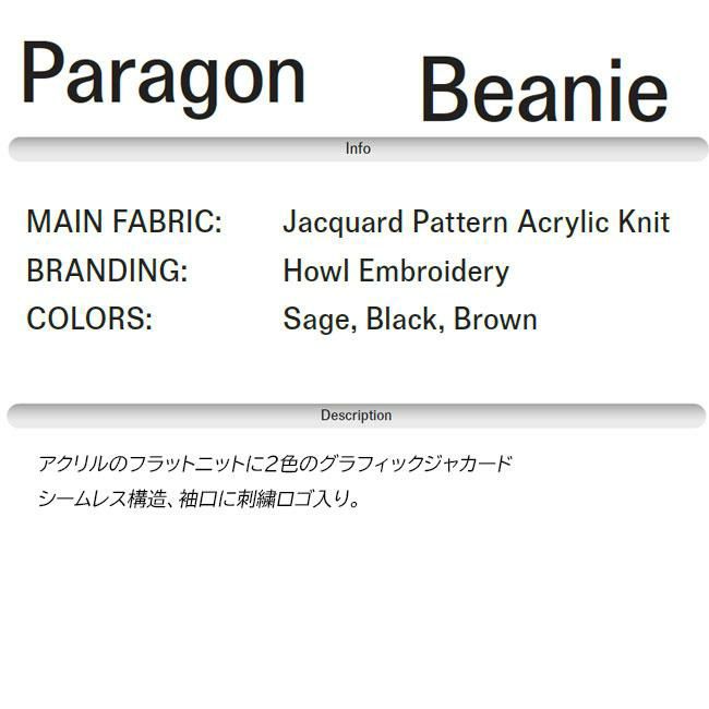 HOWL ハウル PARAGON BEANIE パラゴン ビーニー ニットキャップ ニット帽 ジャカードデザイン グラフィックビーニー メンズ レディース ユニセックス アクリル素材 HOWL正規取扱店 GOLGODA 2025-2026モデル