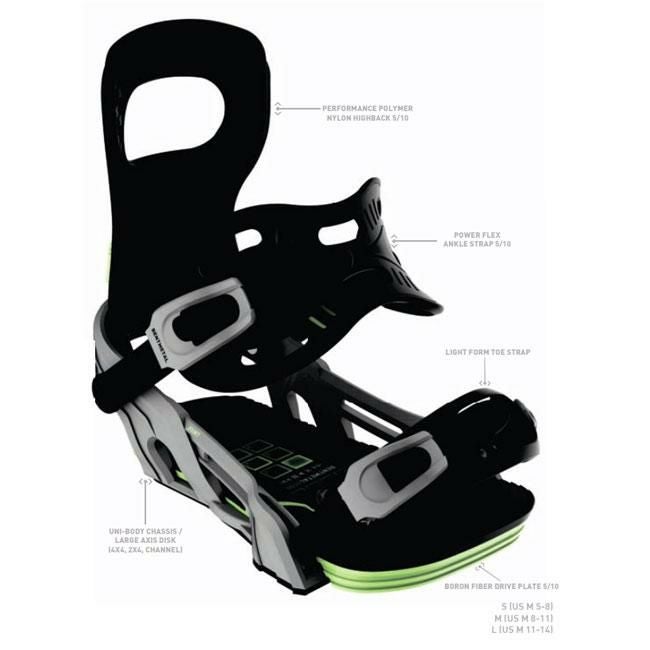 硬すぎず柔らかすぎないボロンファイバーをドライブプレートにブレンド。ユニボディシャーシと新たに採用されたパワーアンクルストラップと組み合わさる事で、足との一体感が高く素早い反応としなやかなライディングが楽しめます。