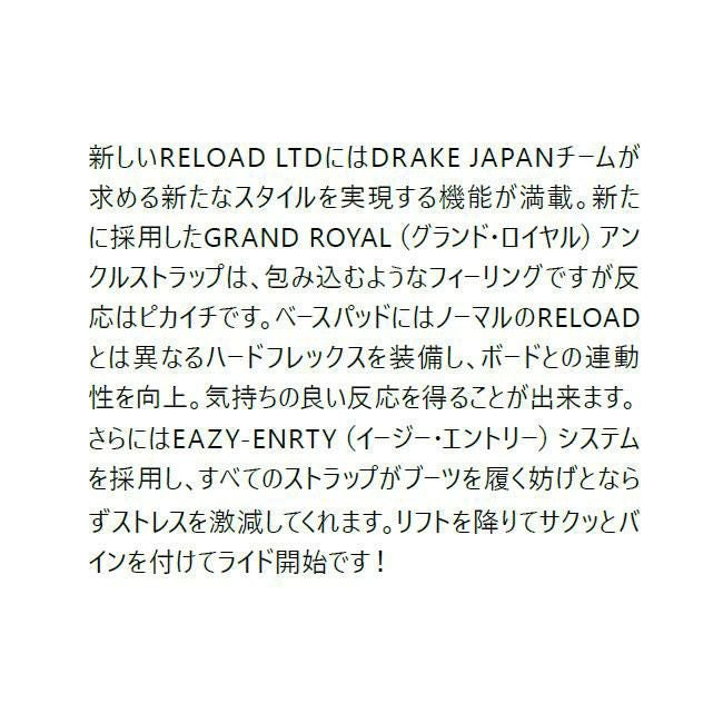 25-26モデル 限定 正規品 男性用 ソフトフレックス ドレイク ビンディング DRAKE RELOAD LTD 25-26 リロード グラトリ オールラウンド メンズ MENS BINDING スノーボード スノボ