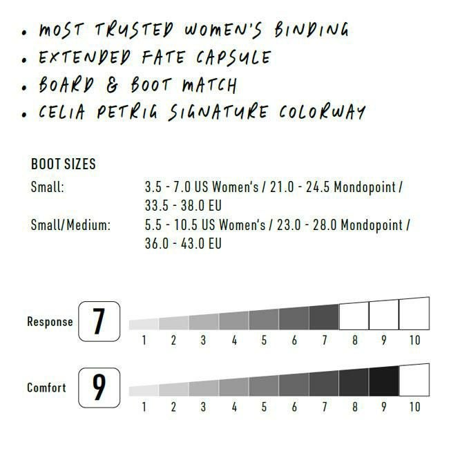 NITRO FATEは、全地形対応型バインディングとして、Nitroライダーたちのフィードバックをもとに開発された女性専用ハイパフォーマンスモデル。