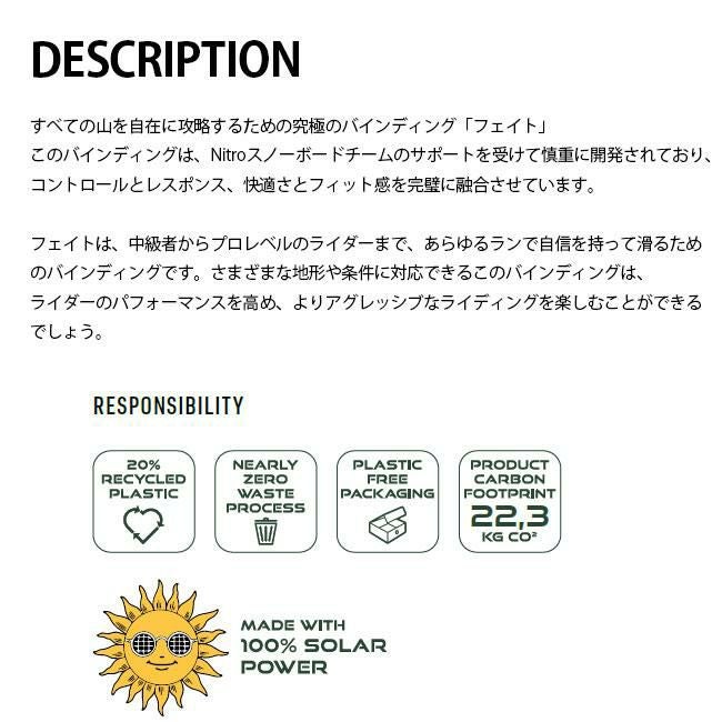 NITRO/NITRO BINDING/FATE/フェイト/2025/2026/25-26モデル/スノーボード バインディング レディース/オールマウンテンバインディング/フリースタイル/フリーライド/中級者向け/上級者向け/軽量バインディング/高レスポンス/正規取扱店/NITRO正規品/GOLGODA/名古屋スノーボードショップ