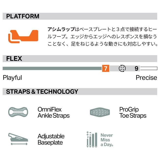 バインディング選びに迷っている方も、パーク・ジブ系からオールマウンテン・フリーライドまで、ライディングスタイルやレベルに応じた最適なモデルをご提案します。