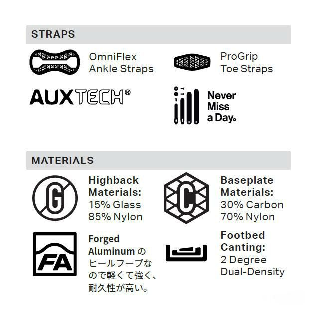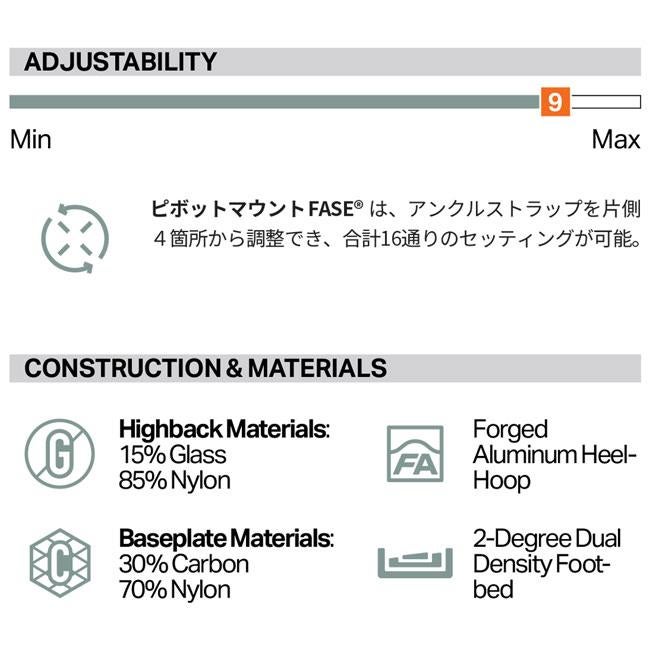 中でも革新的なFASEシステムを搭載したバインディングは、素早い装着と驚異的なフィット感を両立し、多くのプロライダーやギアマニアから絶大な信頼を得ています。