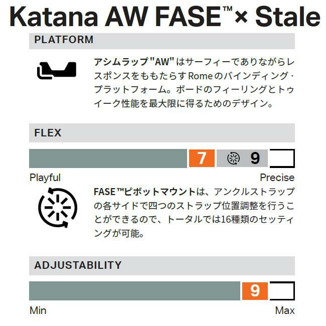 ROME KATANA KATANA FASE カタナ ローム ロームバインディング ステーレ スターレ Stale Sandbech スノーボード スノボ バインディング FASEシステム カーボン オールマウンテン 軽量バインディング 高性能 プロモデル メンズ 2025-2026モデル
