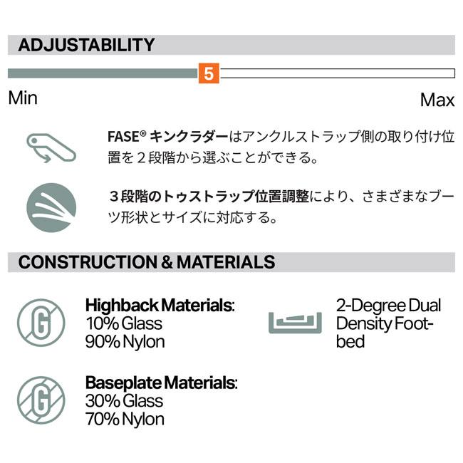 中でも革新的なFASEシステムを搭載したバインディングは、素早い装着と驚異的なフィット感を両立し、多くのプロライダーやギアマニアから絶大な信頼を得ています。