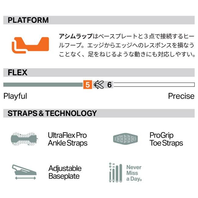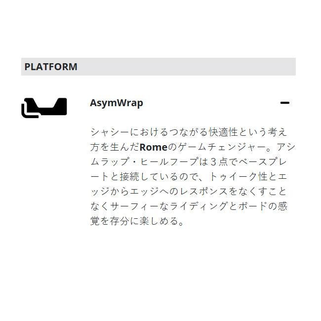 ROME BRASS AWは、AsymWrap(アシムラップ)構造による自然な可動域とサーフライクな操作性が特徴のレディースバインディング。