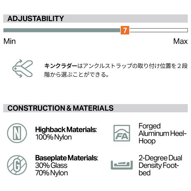 ・Kink Laddersでアンクルストラップの位置を2段階調整可能