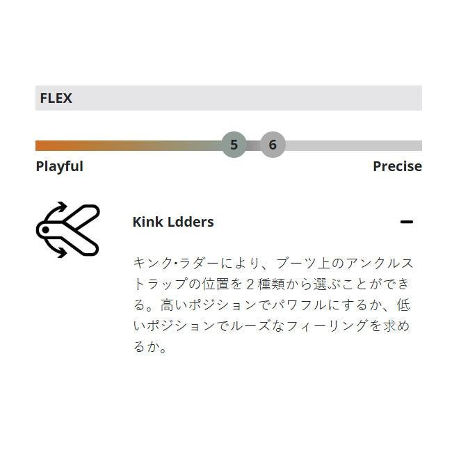 やわらかめのフレックスで扱いやすく、フリーランからパークまで幅広く楽しめるオールラウンドモデルです。