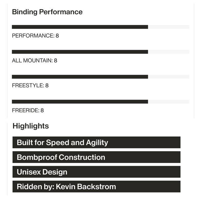 高剛性Duraflexベースプレートと安定感のあるハイバック設計により、カービングやパウダー、急斜面での正確なエッジコントロールを実現します。
