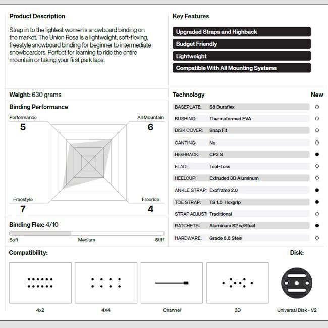 ▼ UNION ROSAは、女性ライダーのために設計された超軽量フリースタイルバインディング。