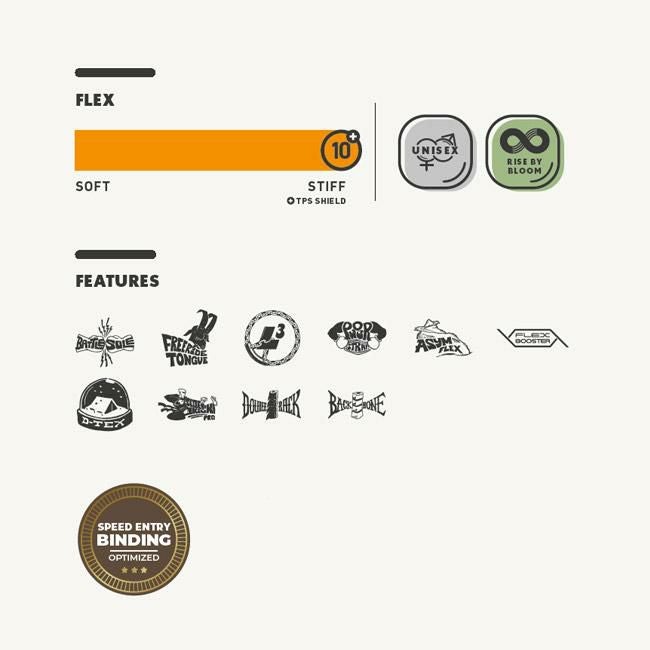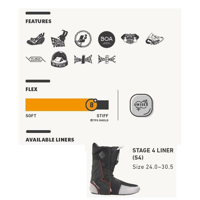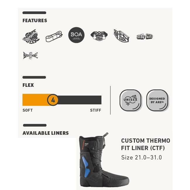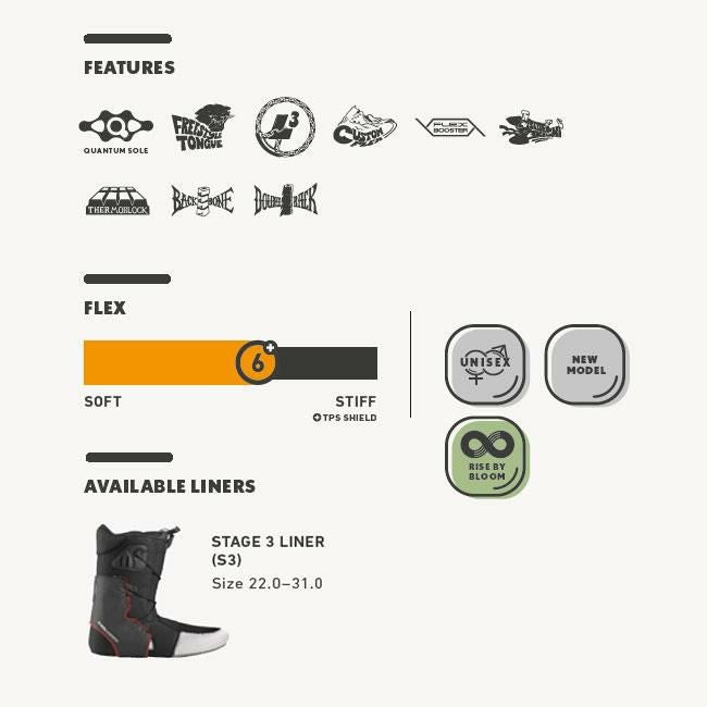 インナーの代名詞ともなった「サーモインナー®」と呼ばれる熱成型インナーを武器に、幅広いスノーボーダーに人気のオーストリアのスノーボードブーツ専門ブランド。DEELUXEのサーモインナー®は、専用のオーブンで熱成型することにより、足とインナー、インナーとアウター、さらにはインソールに至るまですべてを一体化させることができる。それは言い換えれば、一人ひとりの足型に合わせたブーツを提供するということが可能なブランドです。