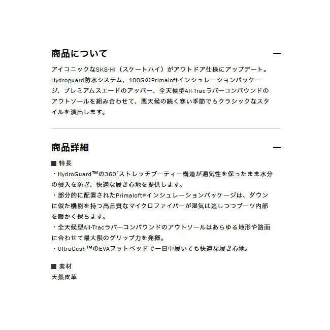 ■モデル:MTE Sk8-Hi Waterproof Insulated(スケートハイ)