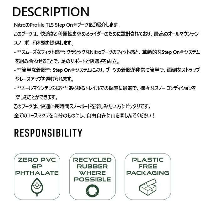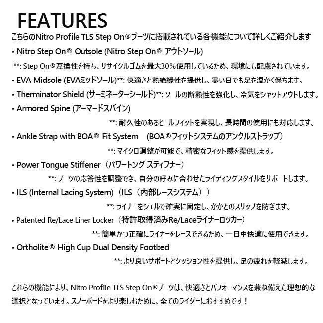 25-26モデル 快適×時短!新時代の定番ブーツ 正規品 ナイトロ ブーツ NITRO PROFILE TLS STEP-ON 25-26 メンズ ブーツ ステップオン対応 オールマウンテンモデル