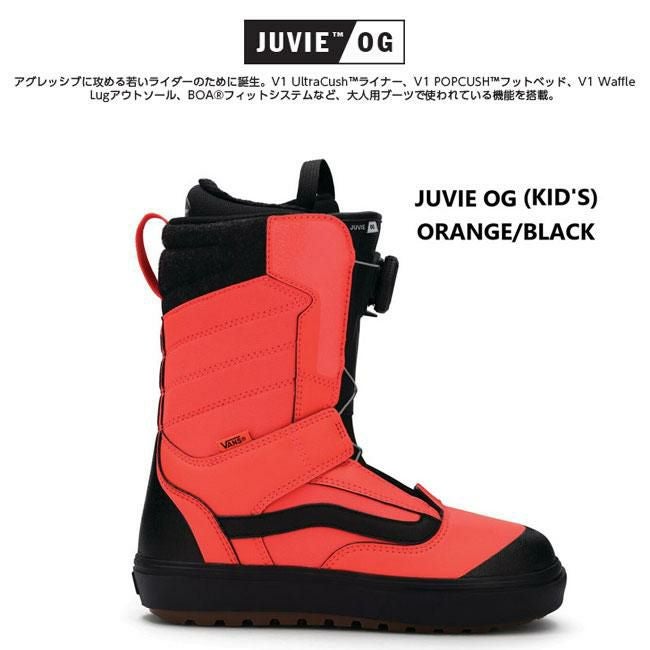 25-26モデル 履きやすさ抜群!BOAでラクラク装着&柔らかめ設計で初めてのスノーボードに最適なKIDSブーツ バンズ ブーツ VANS BOOTS KID'S JUVIE OG / ORANGE/BLACK 25-26 キッズ BOA ボア スノーボード スノボ 子供用