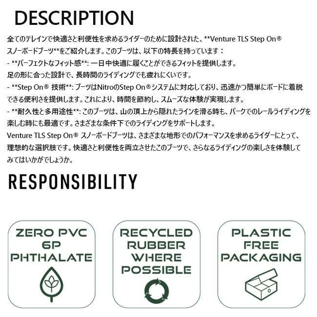25-26モデル 山全体を攻められる快適ブーツ 正規品 ナイトロ ブーツ NITRO VENTURE TLS STEP-ON 25-26 メンズ ブーツ ステップオン対応 オールマウンテンモデル