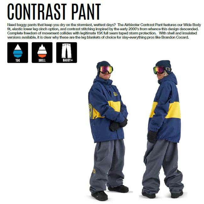 嵐のような雨の日でもドライな着心地を保つバギーパンツが必要ですか?Airblaster Contrast Pantの特徴はワイドボディフィット、