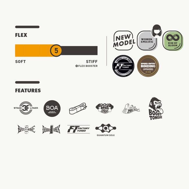 ▼ DEELUXE 26-27 DNA PRO WMN S3Fは、女性の足型に合わせて設計されたBOA搭載フリースタイルモデル。H5 BOAシステムにより素早く均一なフィットを実現し、フレックス5の扱いやすさとPRO仕様の反発力を両立。グラトリ・パーク・地形遊びまでしなやかにコントロールできる、女性ライダーのためのハイパフォーマンスブーツです。