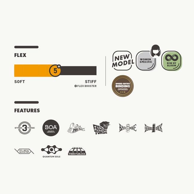 ▼ DEELUXE 26-27 ID WMN S3は、長年支持され続けるレディース専用フリースタイルモデル。扱いやすいフレックス5+とBOA Dual BOAシステムを採用し、甲とスネを独立して締め分け可能。グラトリ・パーク・地形遊びまで幅広く対応する、信頼のベストセラーブーツです。足裏感覚に優れたQuantum Soleが、繊細なボードコントロールを実現します。